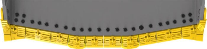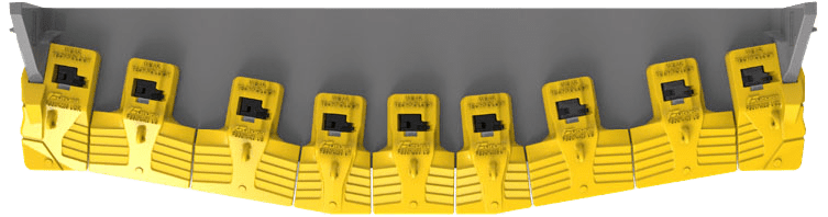 20% more usable wear material, paired with a lateral and central rib design to facilitate material flow, and extend the life of bucket teeth.